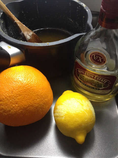 Todo (excepto Ron) Coloque en una olla, cocer durante 15 minutos a fuego medio, enfriar a temperatura ambiente, luego agregue el ron.