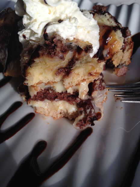 Algunas personas les encanta cortar el postre cuadrado pero cafés spooning como cucharada de helado, y en plato de postre. Me encanta recogerlo más bien cortar cuadrados, hace que sea más bonita :)
