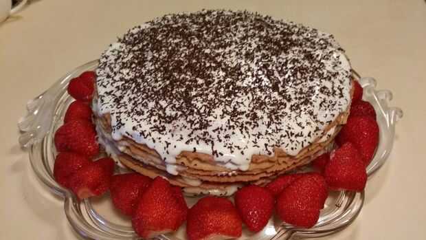 Un popular capas de torta de miel rusa con glaseado hecho con azúcar y crema agria.