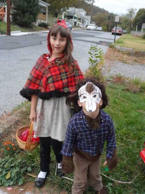 Nuestra versión del traje de Caperucita Roja es solo un vestido ensangrentado encima con una capa con capucha con sangre roja. Le dio una cesta para llevar y compone su rostro con una mordedura de la mejilla del ataque del lobo.