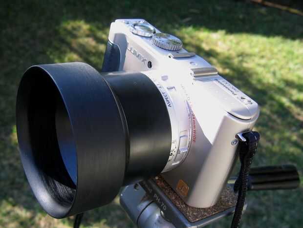 Críticas a este proyecto es la cámara que tiene un elevado fijo anillo frente a la Asamblea de lente movible (lentes de cámara digital están siempre en movimiento hacia adentro y hacia afuera como zoom). Puede haber otras formas de colocación de una capilla improvisada (correo tubo?) a un cuerpo de cámara diferentemente configurado (bandas elásticas, cinta, pegamento), pero ninguno es tan simple como esto. sé que esto es muy específico a la Lumix, pero tal vez inspire soluciones para otras cámaras.