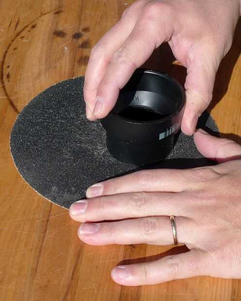 Aquí yo estoy lijado hacia abajo el extremo pequeño, eliminando con eficacia un pequeño bisel interior que pueden interferir con la campana consiguiendo un buen agarre en el pequeño anillo alrededor de la lente de la lumix.