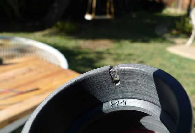 Aquí es una vista del canal después de haya enviado hacia abajo. Tenga en cuenta la muesca correspondiente en el borde: esto es necesario para que la campana quede al ras contra el cuerpo de la cámara (de lo contrario la amarra habría impedido).