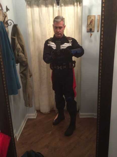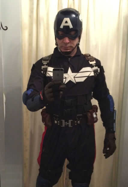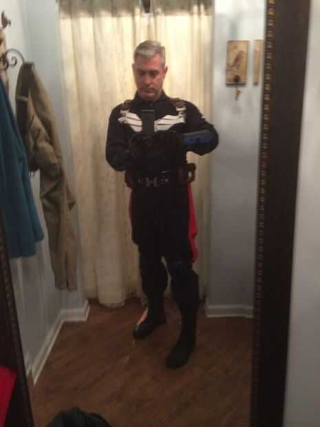 con el soldado del invierno que pensé id hacer un cosplay de la segunda guerra mundial Capitán América clásico para la ocasión.Todo consiste en:-Pantalones verde caqui.-Botas de combate.-Camisa ejército.-Aviador chaqueta o gabardina.-Biker gafas.Casc