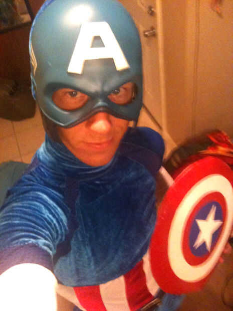 Como Capitán América tiene un traje diferente por la película, que había creado diferentes trajes para mí. Yo había ya usado el Avengers Capitán América disfraz (sobre todo almacén comprado) y mi Super soldado Capitán América traje (sobre todo person