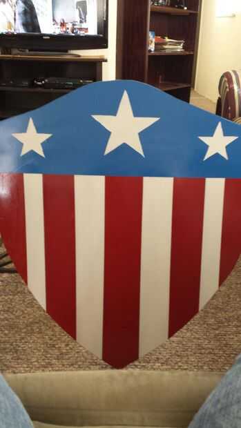 Se acerca Halloween y estaba tratando de pensar en un disfraz. Tengo una chaqueta de cuero, unos pantalones cargo, botas marrones y puede encontrar un casco del ejército a la OTAN de pintura azul con una "A" en él.Necesito un escudo.Encontré est
