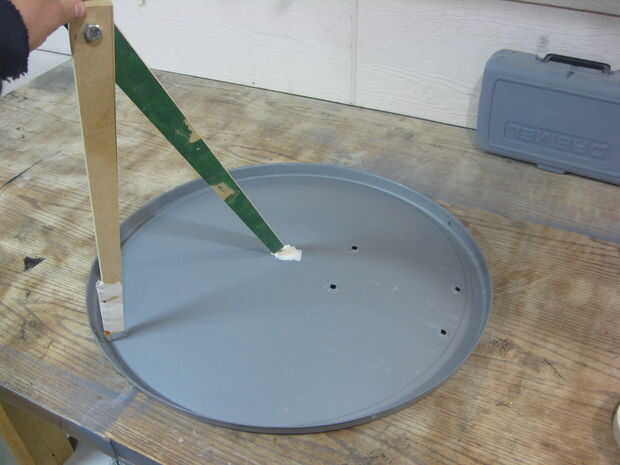 Yo comentar donde el centro del plato era y colocar tres o cuatro pedazos de cinta adhesiva, que proporcionó un lugar para la aguja de mi brújula casera a morder. Luego dibujé un círculo como grande como encajaría en el labio posterior del plato.