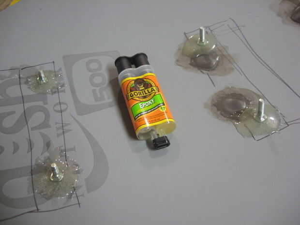 Antes de la epoxying de los pernos, la superficie del plato era rugosa hacia arriba con una Dremel pulido poco.