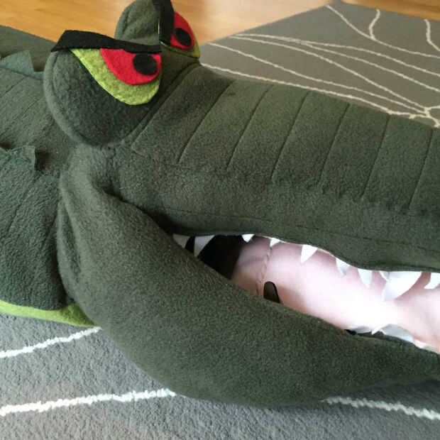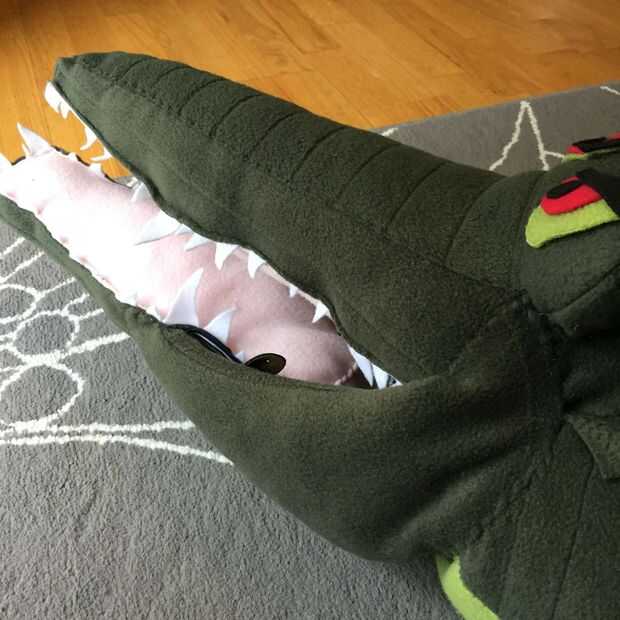 Después de que la papada está lista este es el punto donde yo coser todo lo que se cubrió. Coser la cabeza de la mandíbula, los tirantes. Entonces última cosa la papada.