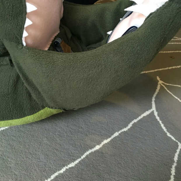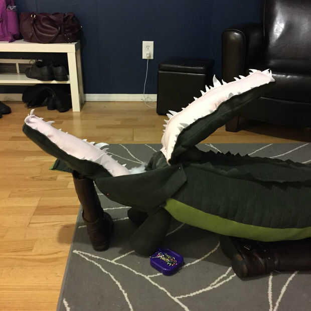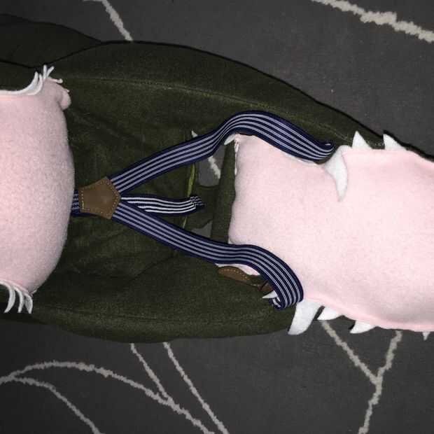 Mientras que los tirantes están en el lugar correcto que tienes que hacer un patrón de papada en forma de media luna. Usé mi papel de embalaje otra vez y dibujó una forma que se asemeja a una papada y también cubre lo que no quería ser visto. Corté el papel un poco más grande que yo quería y lo sostuvo hasta la boca y localizar áreas que necesitan ser reducido. Después de recibir la forma derecha cortar dos piezas con el patrón y coserlas juntas dejando un agujero a la tela de cosas. Invierta la tela y esas cosas. Ahora tienen hasta la boca. Aquí sujetará la papada y asegúrese de que cabe y oculta la culata de su modelo. Si tiene la mandíbula donde se desee y se ve bien entonces hacer otro para el otro lado. Si no se ve bien volver a la mesa de dibujo. Puede que necesite ajustar los tirantes para soportar el peso de forma diferente.