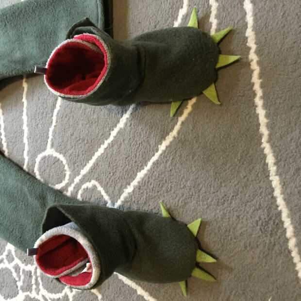 De sus botines hacía para cubrir algunos botines que compré de vieja Marina de guerra. Hice esto por mirar las líneas de costura en los antiguos de la marina de guerra y cortar la tela en las formas generales. He añadido los triángulos verdes como garras para que coincida con las patas traseras.