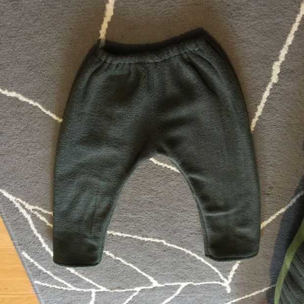 He hecho a mi hijo pantalones en el polar verde oscuro. Yo usaba pantalones que le caben ahora como patrón.