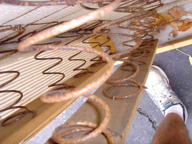 Paso 1: quitar las dos vigas transversales horizontales (ver foto 1). Esto puede hacerse con un martillo.
