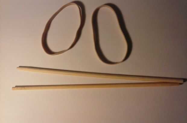 Agarrar los palillos uno o dos (dos para obtener mejores resultados) y dos bandas de goma.