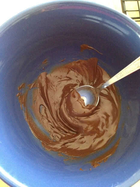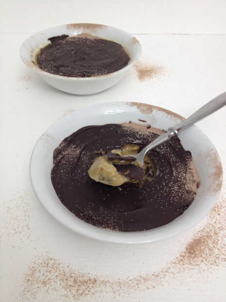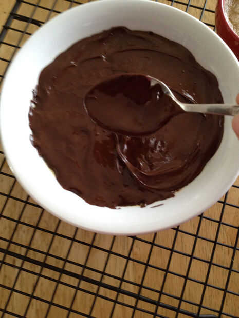 Cuchara derretido chocolate sobre natillas. Cubrir y enfriar por una hora
