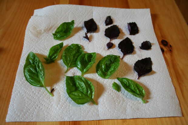 Ahora simplemente pick de un puñado de albahaca hojas para agregar a su ensalada. Unos tallos de albahaca deben hacer el truco. Esto agregará al sabor y aspecto de la ensalada.