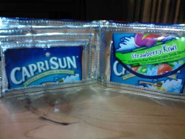 he decidido reciclar una bolsa de bebida Capri Sun jugo usada y convertirlo en un simple monedero.Paso 1: Materiales necesarios Utilizamos una bolsa vacía de CapriSun y algunas cintas de velcro encontradas la sección de arte de wal-mart.Paso 2: Sobre