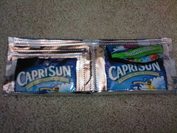 he decidido reciclar una bolsa de bebida Capri Sun jugo usada y convertirlo en un simple monedero.Paso 1: Materiales necesarios Utilizamos una bolsa vacía de CapriSun y algunas cintas de velcro encontradas la sección de arte de wal-mart.Paso 2: Sobre