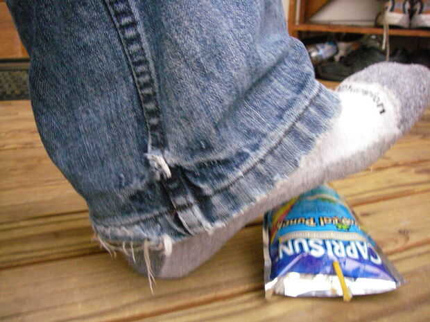 Sencillamente el Capri en el suelo y saltar o stompon. Y si quieres hacerlo un poco más letal luego con cinta adhesiva una aguja de coser hasta el final de la paja.