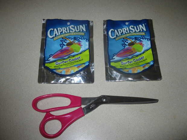 hemos utilizado un par de bolsas vacías de CapriSun y alguna cinta adhesiva para crear la cartera CapriSun!!!!Paso 1: Materiales necesarios... Dos vaciar bolsas CapriSunCinta para ductosPaso 2: Cortar y limpiar Cortar la parte superior de ambas bolsa