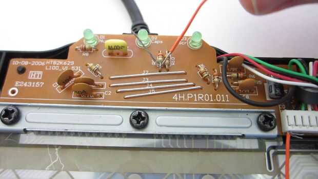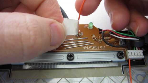 Queremos que conecte el cable del interruptor del juego en el módulo de sonido a uno de los terminales del LED o su resistencia. El mejor lugar para conectar el cable es el terminal en el LED o la resistencia que está más cerca el circuito integrado. Este terminal tendrá la tensión más baja cuando él LED se activa. Al conectar el interruptor play a esta baja tensión, se simular el interruptor play siendo presionado y activar el módulo de sonido.