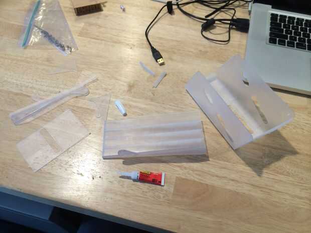 Montaje de las piezas con superglue fue bastante indoloro. He utilizado el material claro Vero y algunos genérico pegamento líquido. Las paredes de mi modelo fueron aproximadamente 1/16" de espesor, y los pegado a bordes de esta manera era no hay problema.