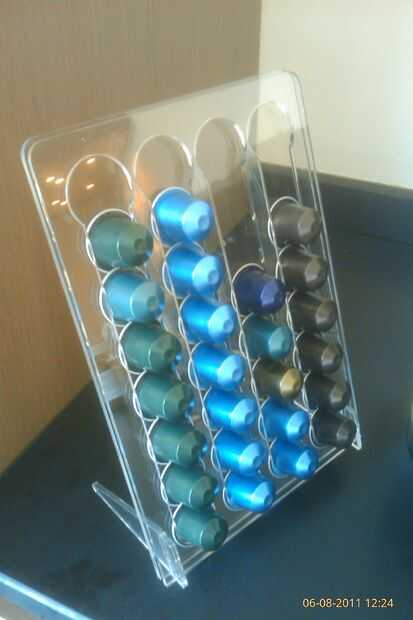 Este porta cápsulas Nespresso fue fabricado en el Fablab maravilloso en Lovaina, Bélgica.
