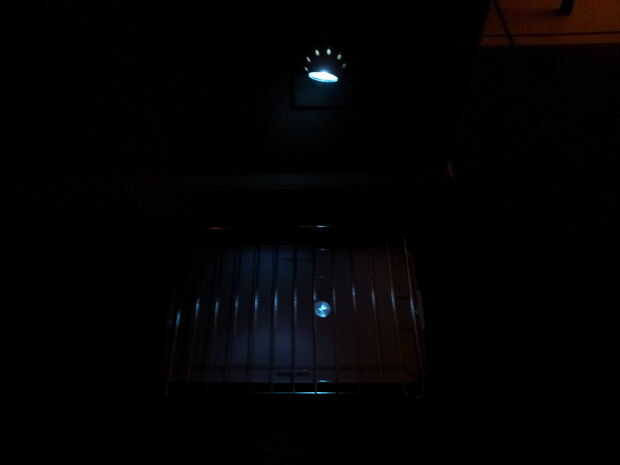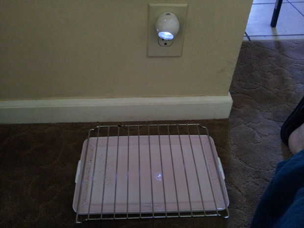 Bien aquí se verá la trampa toda instalación y en su lugar. La luz de noche LED está conectada justo encima de él. Las pulgas saltarán hacia la luz y bam se hundirá en el agua jabonosa.
