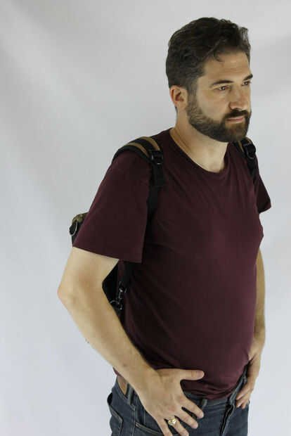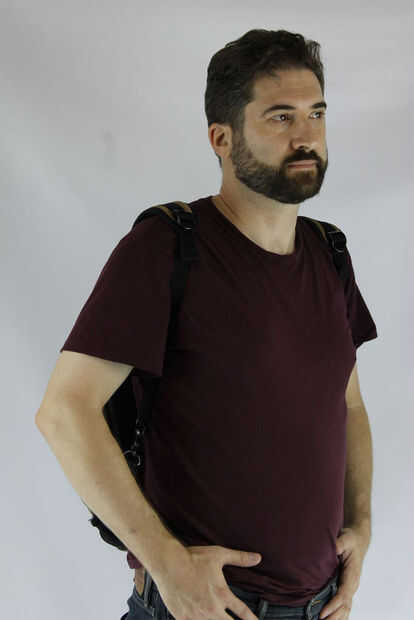 Necesita por lo menos 2 ángulos de las mismas piezas del cuerpo para tener el software hacer una malla. Tenga en cuenta que las fotos de mi cuerpo superior y cuerpo inferior tienen una pequeña superposición; puedes ver mis manos y la parte superior de mis pantalones en las tomas de la parte superior del cuerpo y los golpes al cuerpo inferiores. Esto es esencial para PhotoScan crear un modelo 3D del cuerpo entero.