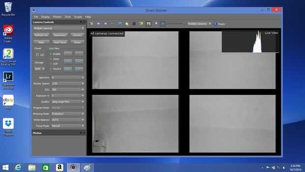 Abra SmartShooter. Cuando todas las cámaras se conectan a la computadora a través de USB, SmartShooter debe reconocer todas las 4 cámaras. Si no es así o tiene otros problemas de sincronización de las cámaras, pase a mis pasos.