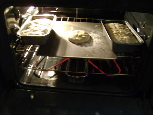 Utilice un cuchillo afilado para hacer unos cortes en la parte superior del pan para permitir la expansión y pop la masa en el horno.
