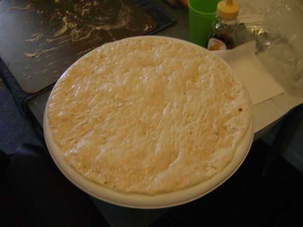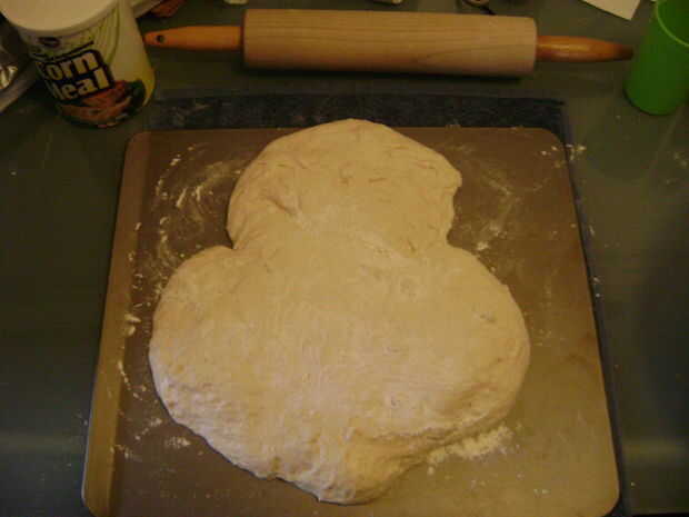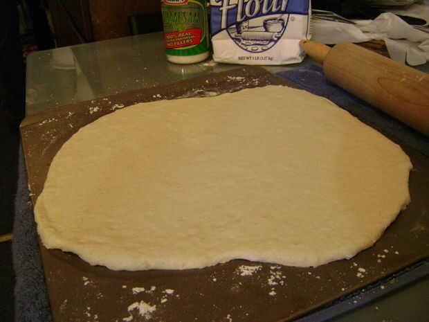 Haz sobre una superficie enharinada y agarrar un enharinado. Aplanar la masa lo mejor pueda.