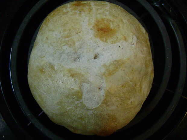 Una vez que el pan esté ligeramente doradas y huecas cuando golpeó (está todavía caliente, tenga cuidado) adelante y sáquelo y déjelo enfriar.