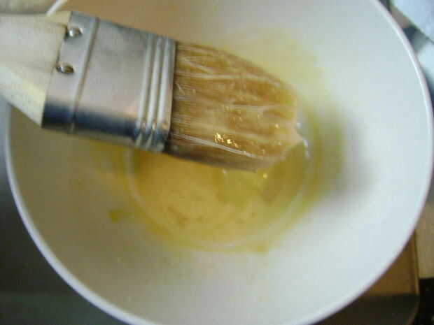 Paso opcional: Mezclar un poco de mantequilla, un huevo, una yema de huevo (opcional. Yo uso un medio) y una pizca de ajo en polvo.