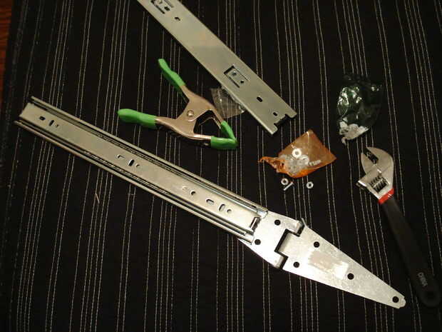 ~ 4 tornillos, 4 tuercas y 8 arandelas. Para conectar los corredores de la bisagra y del cajón. Los pernos deben ser bastante cortos (~ una llave. Para apretar los pernos.