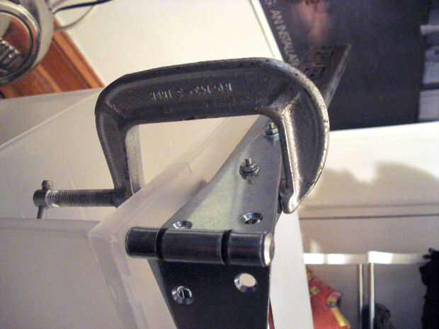 Mientras que Windows es búsqueda, suponiendo que usas la plataforma detallada en el último paso, abrir la plataforma de cámara y fijarlo con la abrazadera a la esquina de una mesa. Asegúrese de no apretar demasiado la abrazadera o la gaveta no se abre fácilmente.