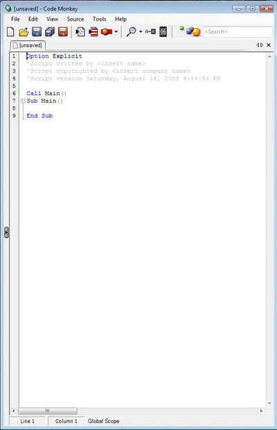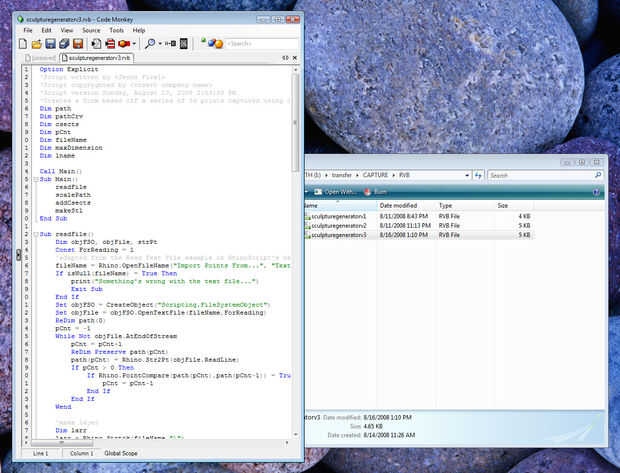 Busque el archivo de script (sculpturegeneratorv3.rvb) y lo arrastramos en la tira de pestaña en la parte superior de la ventana del editor de script.
