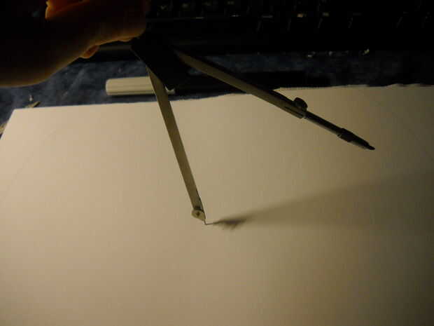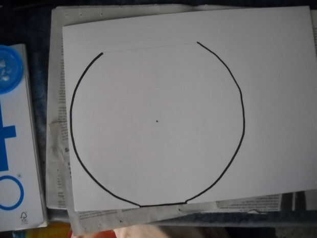 Se puede dibujar el círculo con algo circular, pero de esta manera desea que el centro y tienes que buscarlo. He utilizado una brújula, pero se puede hacer una brújula simple usando un perno (el centro del círculo) y un pedacito de hilo.