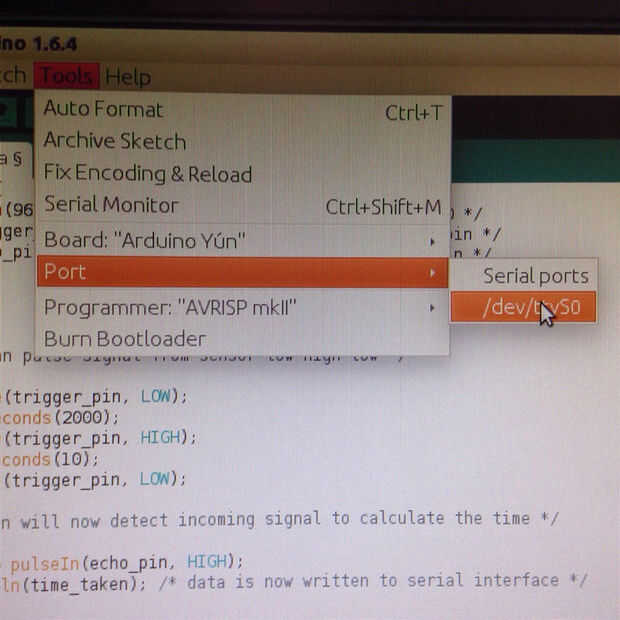 Para correr el programa guarde el python de código, abra el terminal tipo = > python "Nombre del proyecto python" arduino puerto nombre de (ejemplo: python self.py/dev/ttyS0 ). Nombre del puerto Arduino se muestra en el ide de arduino elegir Herramientas = > Puerto = > nombre del puerto se muestra en el ide.
