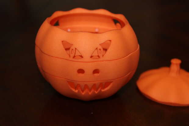 Este pasado mes de octubre, intenté mi mano en "partes móviles" para hacer un juguete de "Dial-O-Lantern" para mis hijos. El concepto era que un 3D impreso gato-o-linterna con tres piezas deslizantes que le permitirá "marcar" y configurar entre 3 sistemas diferentes de ojos, 3 sets de narices y 3 conjuntos de boca--un total de 27 combinaciones diferentes de la cara. La calabaza impreso totalmente montada y tiene una tapa extraíble para que una luz LED se puede colocar dentro.