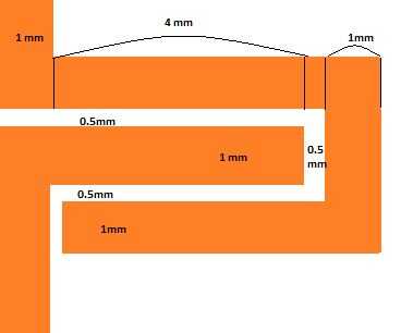 Usando las distancias mínimas y colocar en un espesor mínimo de pared de 1 mm, tenía una idea de cómo es grande mi conexiones iban a ser.