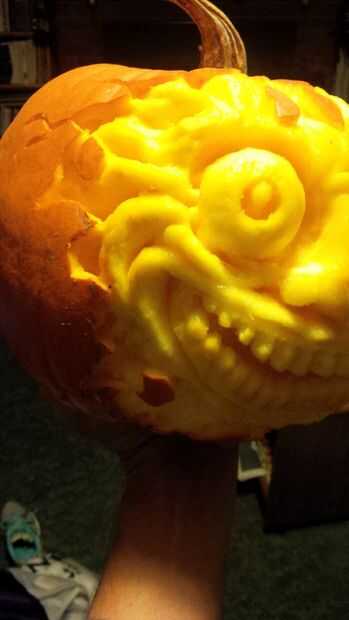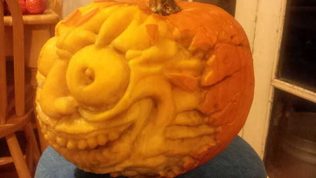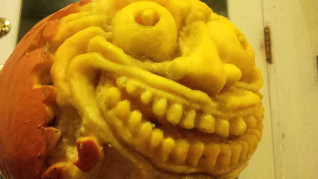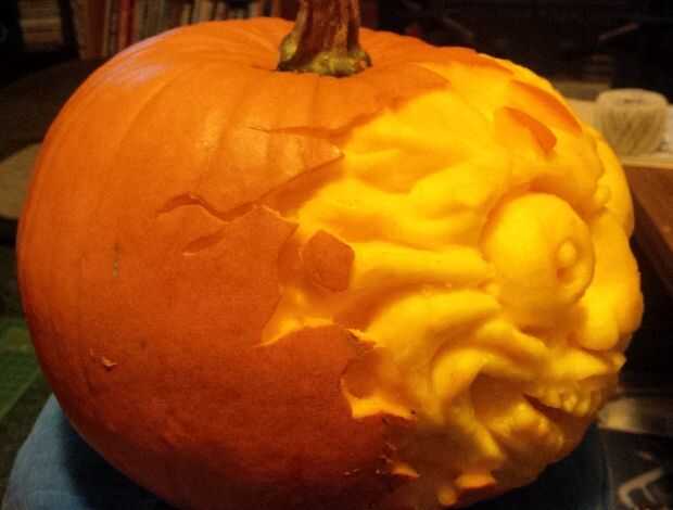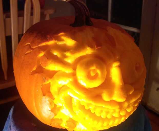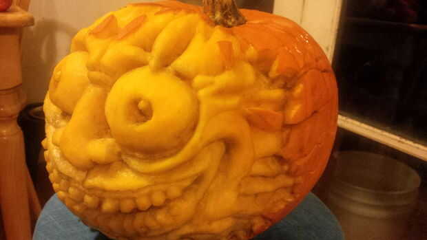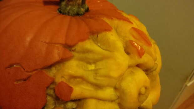 Este chico va a durar un poco más que una calabaza tradicional porque no romper en el centro donde viven las semillas. Él conseguirá cada vez más desagradable de aspecto claro, pero a partir de esta escritura que Halloween es sólo cuatro días, y estoy seguro de que vivirá para ver una variedad saludable de caramelo-arranque ne'er-do-wells paseando por las calles.