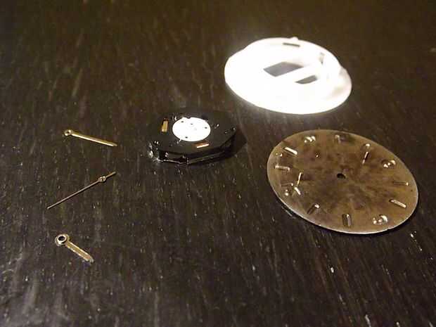 Ahora usted debe dejarse con un mecanismo, un soporte de plástico y 3 manos (por supuesto, las manos de reloj).