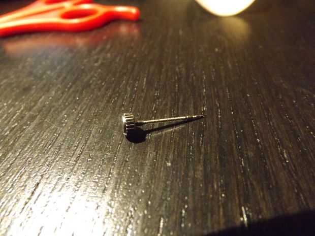 Para quitar el mecanismo y la cara, usted necesita encontrar el pasador que sujeta la corona (la corona es la perilla que se utilizar para cambiar el tiempo). Sólo presione el pasador hacia abajo con la punta de un cuchillo o tijeras y tire de la corona. Podría ser más fácil y menos perjudicial si pones algunos de la fuerza en la corona y lentamente Presione el pasador de liberanción. Esto liberará la corona tan pronto como sea posible, que evita que el pasador de liberanción deforme (por presionando hacia abajo demasiado, esto sucedió un par de veces para mí antes de que aprendí el truco. Si ha deformado, esencialmente siempre estar en la posición "release" y la costumbre de la corona permanecerá en.)