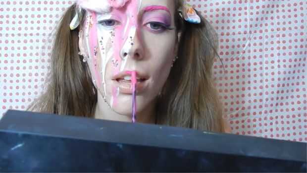 Usé un labial líquido caliente rosa de NYX por todo los labios y luego me puse el color púrpura lavanda de efectos de wolfe y había agregado a las comisuras de mi boca arrastrando en.