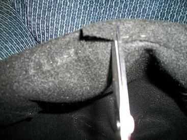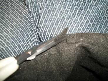 Con siscors, corte la parte que no cose. Tenga cuidado de no cortar el hilo!