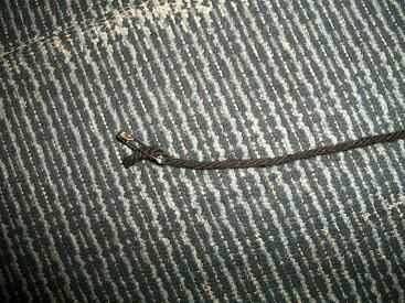 Corte aproximadamente 3 pies de hilado. Tomar un alfiler y el clip en un extremo del hilo. Empuje a través del orificio que hiciste el último paso y mantener desplazamiento a través del "tubo" hasta que se empuja hacia el otro lado. Sáquelo un poco hasta que quede a la misma longitud que el otro extremo del hilo.