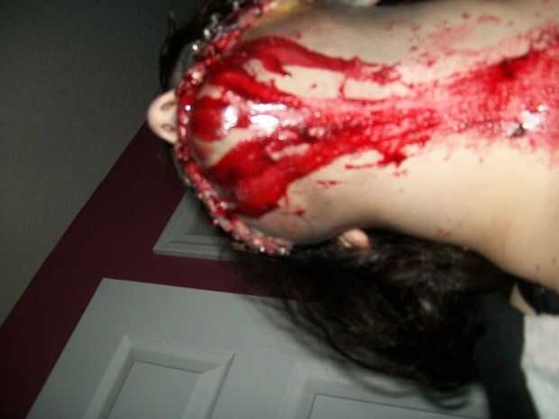 En primer lugar usted necesita para asegurarse de que su cara esté limpia y seca (utilizar la base en polvo o talco y cepillar el exceso). Ahora vas a hacer la prótesis de la boca para hacerla ver corte abierto. Tomar papel higiénico y Enrolle firmemente en un largo gusano como forma (usted puede elegir para que sean largos o cortos dependiendo de cuánto tiempo desea que su "cuchilladas" a ser). Necesita hacer cuatro de estos. Cubierta en látex líquido y mientras que permite que se sequen, aplicar goma espíritu con tus mejillas y dejar obtener pegajoso. Tomar los rollos de secado cubierta de látex y goma de espíritu se aplica a ellos y aplique en el borde de tus labios (uno en la parte superior e inferior en ambos lados. Luego tomar el resto de los rollos y aplicarlas a tus mejillas (hacerlos volver a un punto en los extremos más lejanos). Ahora se agrega una capa de látex líquido final a éstos y dejar para secar. Aplique la base líquida para esto se fusionan con tu tono de piel natural.
