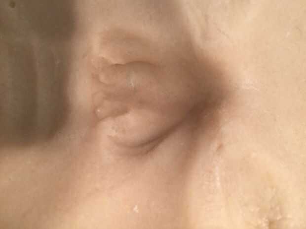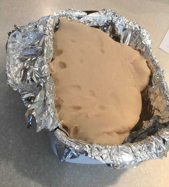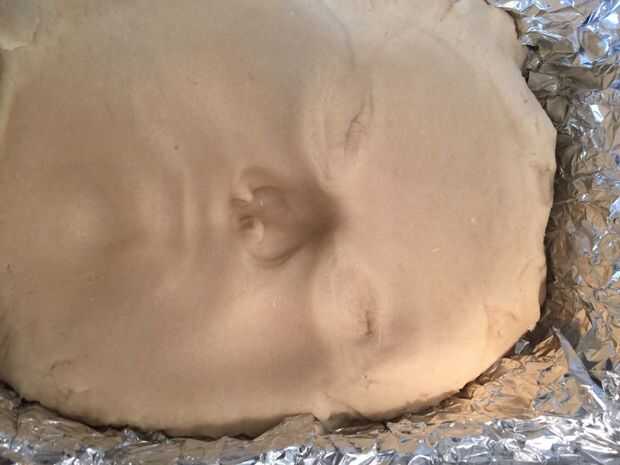 Amasar la plastilina y luego ponerlo en una bandeja de papel de aluminio forrado y empuje su cara! después de cocer al horno a 350 F por 30 minutos