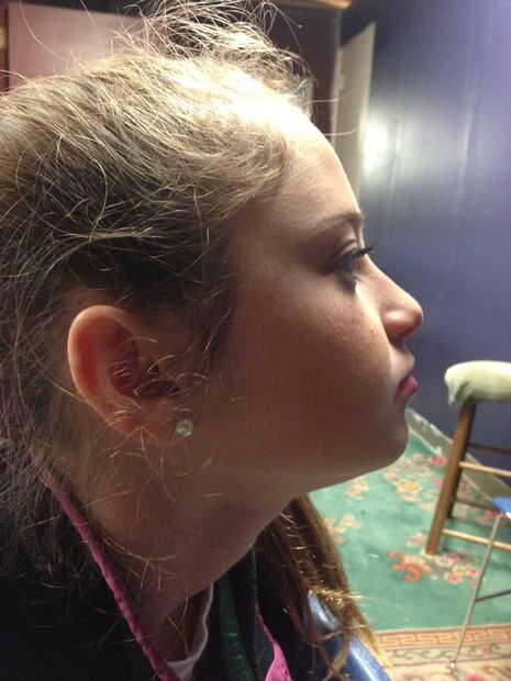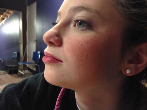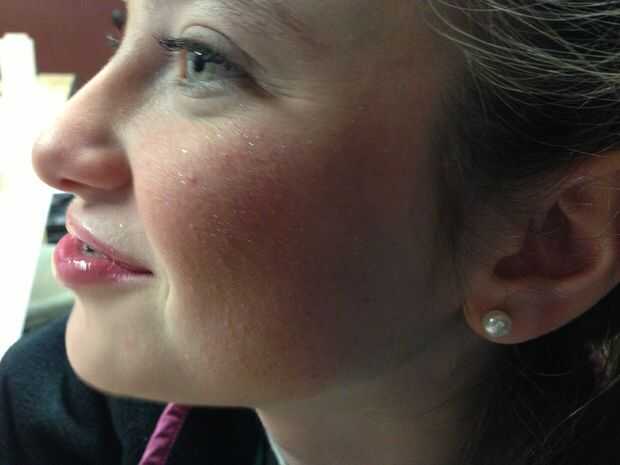 Hacer un pez cara y aplicar sobre las manzanas de tus mejillas.